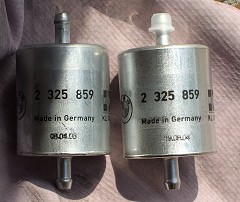 燃料ポンプユニットをやっとの思いで取り外しようやく燃料フィルター登場。で、付いていたフィルターの日付は2003/4/8。。あらら替えてありました。。