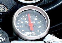 パワコマの空燃比計がようやく届き装着。これはセッティング詰めるにはたいへん便利。刻々と変化する空燃比。