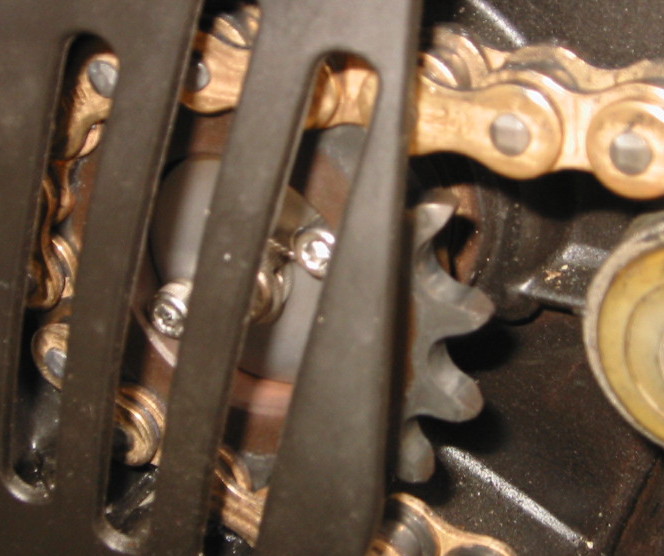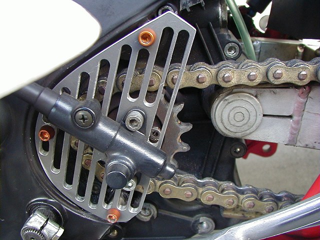 自分も同じプレートを作って取り付けしていますが、以前中強度ネジロック+極太ワイヤーでロックしていたにもかかわらず、まん中のボルトを走行中にぶっ飛ばしてケース、チェーンに傷を付けてしまったことが有り、思いっきり挟まって転倒するかと思いました。