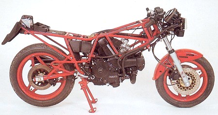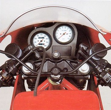 1985 - A scant few months away from Ducati Mechanicca being taken over by the Cagiva Group, a street version of the TT1 race bike is released. They call it the "750 F1 replica" in the owner's manual.