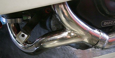 国産車でも何でもエキパイの取付は大変なものですが、ドカは2気筒ですしまだ楽です。力業で入れないと入らない物(ドカ996系など)もありますが。