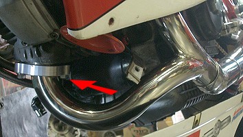 フロントバンクシリンダーフィン、フレームとのクリアランス、ピックアップからのリード線を交わしながらアンダーカウルに接触しないようエンジンに沿わせ、