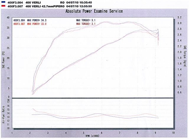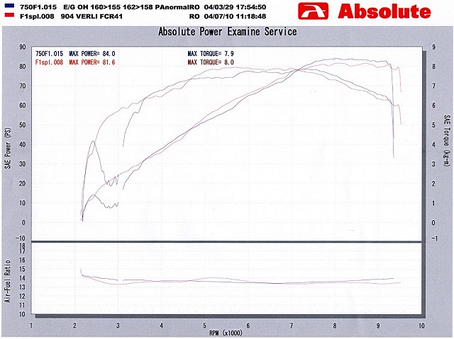 400の高回転型カムと相性よし。空燃比参照(ベストは13、上薄い、下濃い)