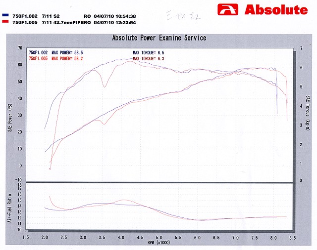 マフラーとの相性もあるようで、オープンで抜けの良いマフラーの方が結果が良さそうです。やはり高回転向きのエキパイなのは間違いないです。