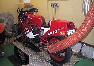 | - エキパイの取り付け方 - 熟練したショップのエキパイ装着法をお教えします。(現行ドカのフルエキ装着の際も同じ)※自身のない方は熟練したショップにご依頼下さい。 コツは、前後バンクフランジを4本のナットで仮止めし、マフラーを差してマフラーステー固定ボルトも仮止め、 マフラー差し込み長さをおおよそ決定して下さい。この差し込み長さがポイント。(※決してエキパイだけで本締めしないで下さい) 前バンクフランジ、後バンクフランジ、マフラー差し込み長さ、マフラーステー固定ボルトのバランスを取りながら、 4個のナットと1個のボルトを少しづつ締めてマフラーの差し込み長さを調整しながら装着するのです。 作業の流れは、まず純正エキパイを外し純正ガスケット(必ず入っています、マイナスドライバで外す)を外します。カーボンをキレイに落とし、 新しいガスケットを入れて(すぐに抜けてしまうので液体ガスケットで固定した方がやりやすい)クラブ製エキパイを合わせます。 ばっちり精度は出ているはず。しかしシリンダー、クランクケースとフレームのわずかな個体差による誤差の組み合わせで リア側が奥までぴったり入らなかったりしますがその場合はガスケットを2枚にしたり液体ガスケットで対応してください。 鉄製エキパイは柔軟でしなるのでその必要はないでしょう(排気熱でその形で固定されます。純正がぴったりなのはそのせい) 当初純正のフランジは使わないタイプで製作を予定しておりましたが、なるべく純正に拘り純正同タイプにしました。 同じ42.7パイでも入り口38パイのコニカルヘッダーだからできたことです。 仮留めする際、純正の三か月型のマウスピースのようなカラー2個を前後同時に付けるのが大変ですが、 これもパンタ以降空冷ドカ乗りの試練と割り切って下さい。とにかく落ち着いて作業して下さい。 |