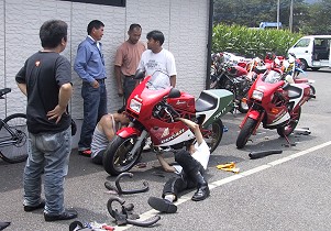 sampeiさん(750F1 デロルト36 ベルリッキレプリカ静音マフラー)、有吉(900F3 FCR41 ショート管)