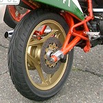 タイヤはTT900GP予定。このマシンは鉄スイングアーム&バイアス細タイヤでがんばります。ホイールはテクマグなんて入れてみたいけどガマンガマン。