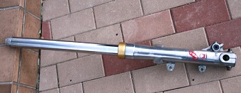 フロントサスOH。右側完成。まんまGP40フォークに。シールキャップはGP純正、シールはARIETEの40でばっちり。