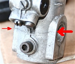 (クラックの原因は最初から割れてたか、、フロントのアクスルシャフト締めすぎ(^_^;かエンド部に差し込む簡易フロントスタンドを使っていたせいだと思う)
