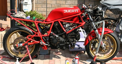 本当はエンジンフルOHして中から新車のようにパーフェクトな状態に仕上げたかった。それだけが心残りですが、だましだまし壊れたら治してというF1所有の険しい道?を受け継いでがんばって欲しいです。それと、フロントフォーク左側ポリッシュの宿題、、がんばってくださいね!(笑)