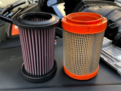 DP(ドゥカティパフォーマンス)ECU(96521511B)と、K&Nパワーフィルター(DU-6908)。エアボックスは穴開け加工せずそのまま付けました。