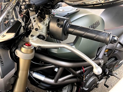 乗った感じは紛れもなく荒削りなDUCATIです。クラッチは湿式ながら繋がりが唐突でスパッと切れスパッと繋がりドカらしい。スリッパーはさりげなくしっかり効いており後輪のロックも防ぐ。