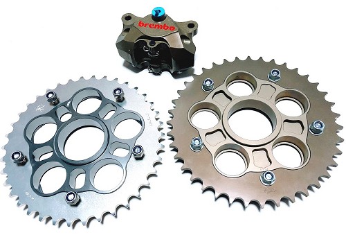 左画像はJTとXAM、右画像はJTとAFAM。AFAMリアスプロケはbrembo同様ハードアルマイト。