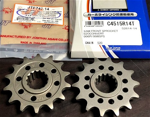 JTスプロケット製キャリアーとAFAM、XAMスプロケを使用予定。996R/998R用の前後スプロケと、従来からの996用キャリアが使用可能なので助かります。