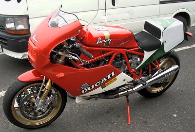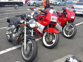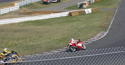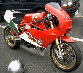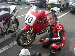 ![]() F3の岡野さん、今日はメインマシン白フレームの750SSで参上!速い! |