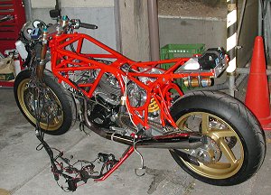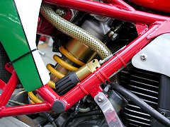 リアサスですが、とりあえずM900用オーリンズを付ける予定でしたがラボカロと相談するうち、ちょいとサーキット走行も考えて851/888用オーリンズを元に9.5のバネとリモートプリロードアジャスターを付けることにしました。今週末か来週頭にも装着予定。実験開始です。