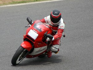 それからきれいな乗り方なんだけど、ちょっとオーバーアクション気味に体をインに預けた方が良い、頭の位置もインよりにして曲がるってみると良いかもとのこと。