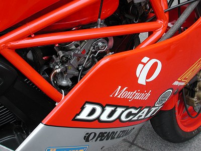 1、エンジンはカムをV2にかえ(モデル分かりません)キーで1度遅らせてます。 これはさらに低速がよくなりました 2、ヘッドのバルブシートの打ち変えをしてピストンリングを交換しました。 3、キャブはFCR39でニードルはOCEMTでメインは160、スローは55です。 マロッシもいいですが開け始めからの付きは格段にいいです。 4、フロントサスはノーマルをオイル5番、イニシャルはカラーを詰め10mm掛け です、シールはTIOの改造品です、これで良く動きます、 リアーはスプリングを7,5kgと柔らかめです。 5、シートは15mm厚のラバーを入れ張りなおしました、これでコナーの倒しこみが 楽になりました。 6、リアーのスプロケは先日40から37Tに変えました約1速高くなりました、 発進の問題はありません、高速走行がらくになりました。 |